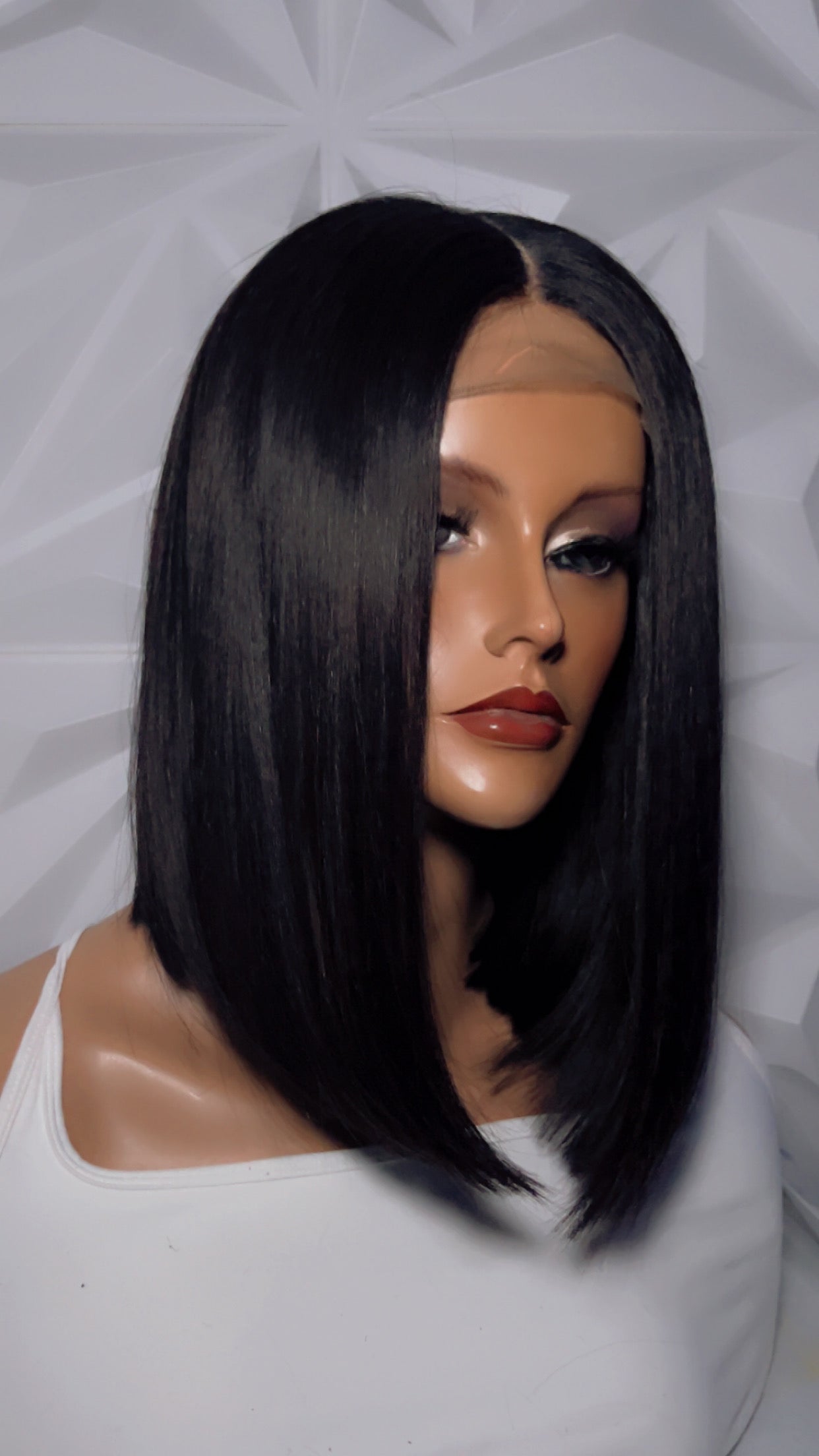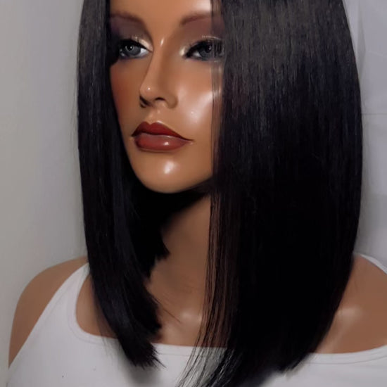 Long cut bob, hd lace closure all human hair bundles. Hand stitched middle part.